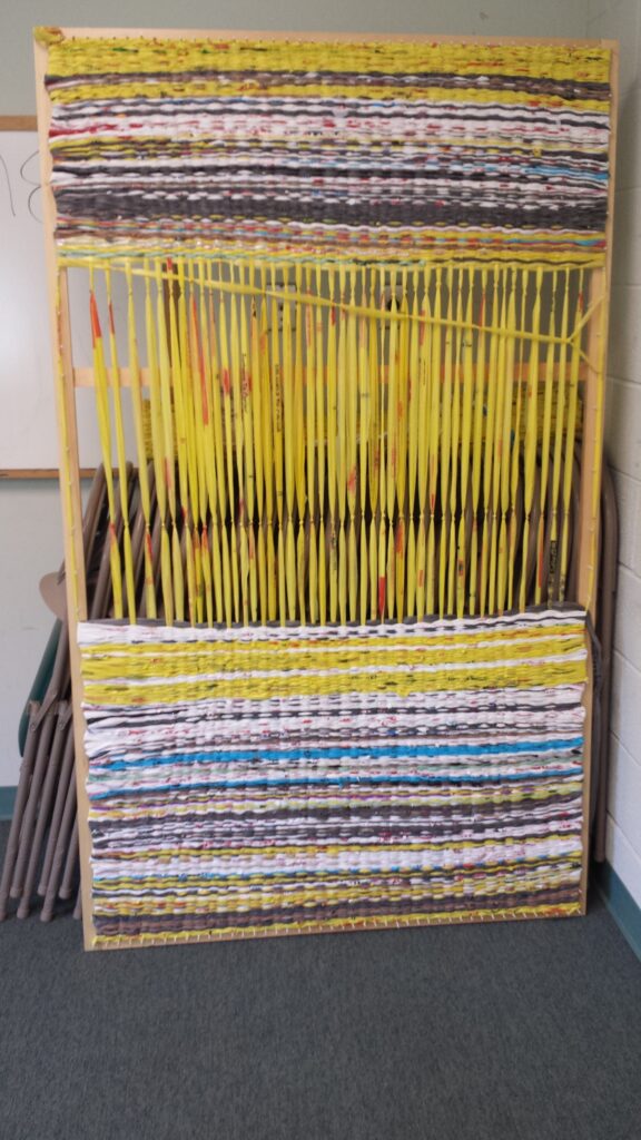 For years, only those with prior crochet skills helped make the mats. Then two men said they wanted to help. They didn’t know how to crochet, so they built a large wooden loom instead.